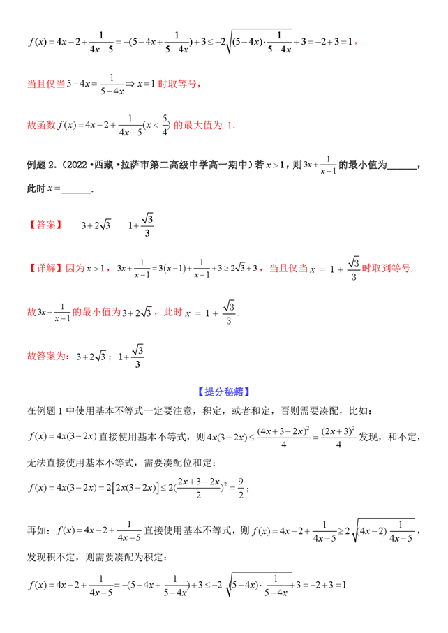 - 4.132 专题 基本不等式和对钩函数(一)