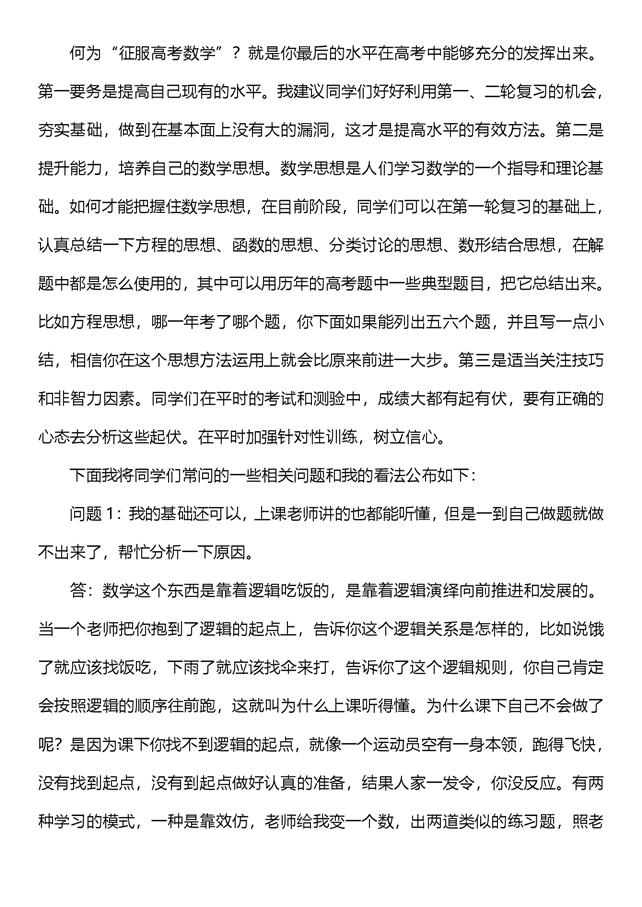 - 2.0征服高考数学学生最常见的18个问题