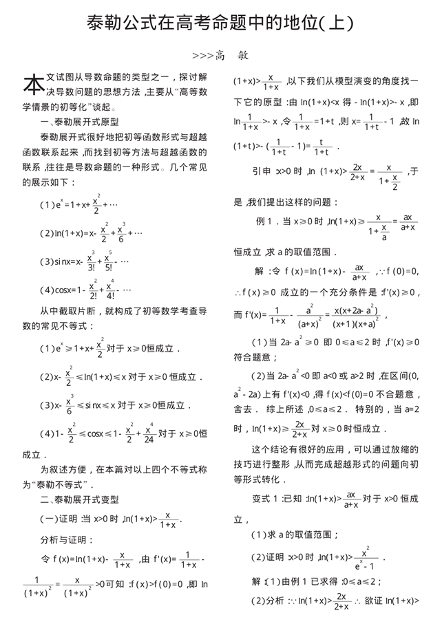 泰勒公式在高考命题中的地位