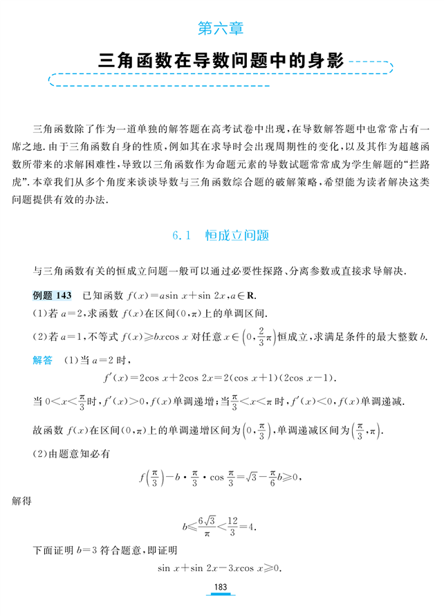三角函数在导数问题中的身影1----恒成立问题、函数不等式证明