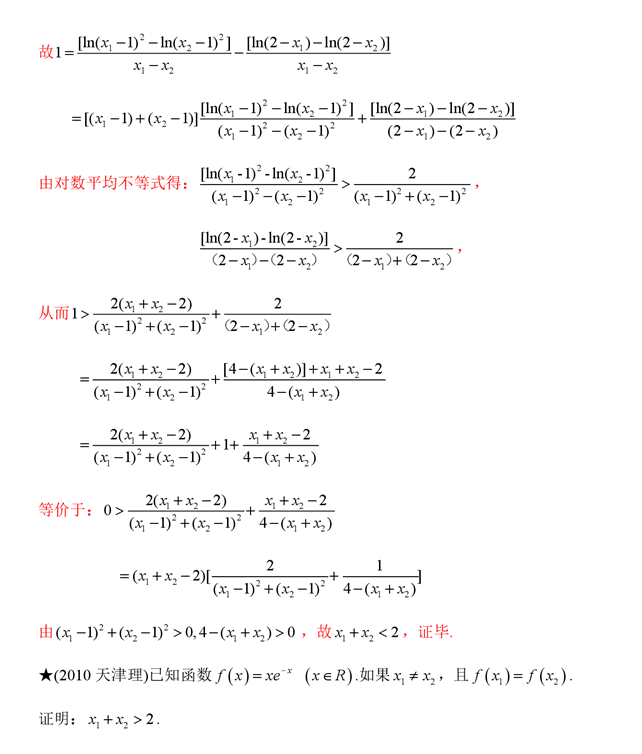 - 6.181极值点偏移专题5之第三招---含对数