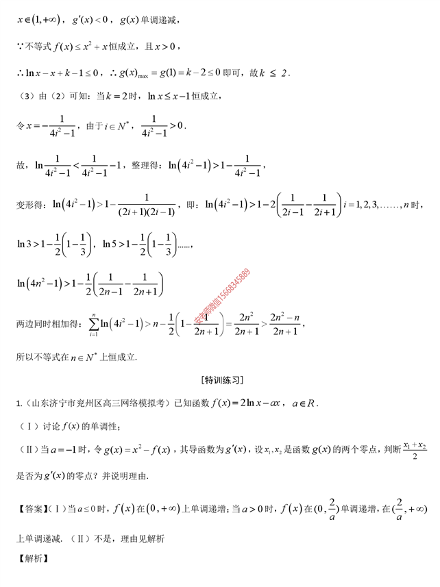 高考解答题提分特训 10 讲 之 导数研究函数性质及不等式问题