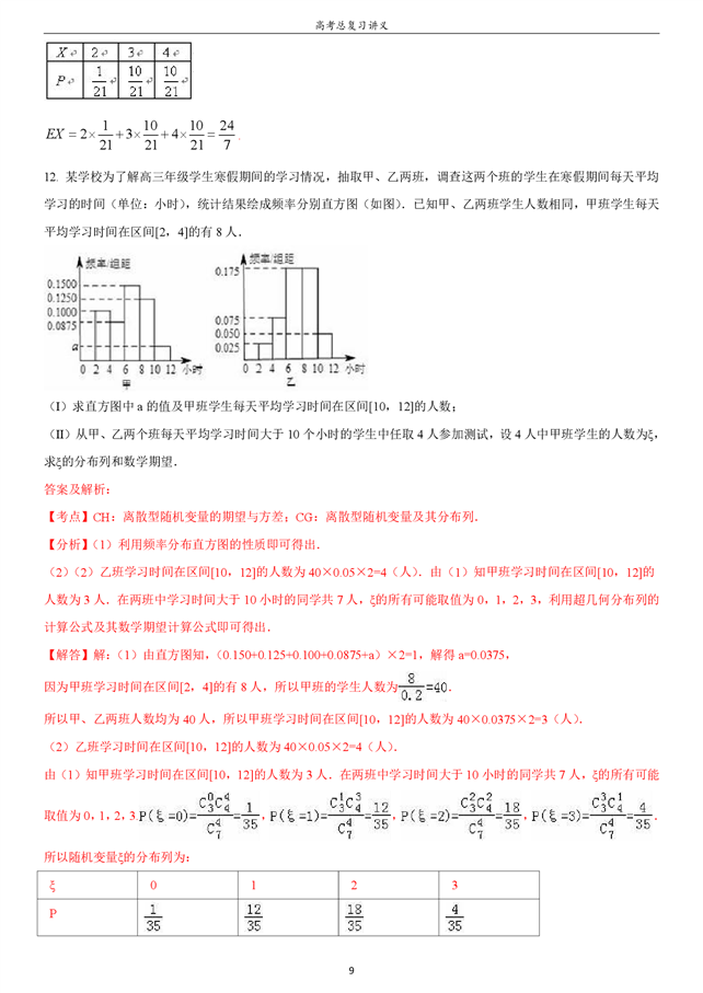 - 9. 专题 离散型随机变量的均值与方差(4类必考点)(