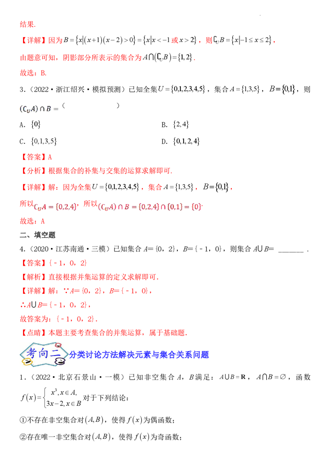 - 8.02022高考数学真题分类汇编----集合