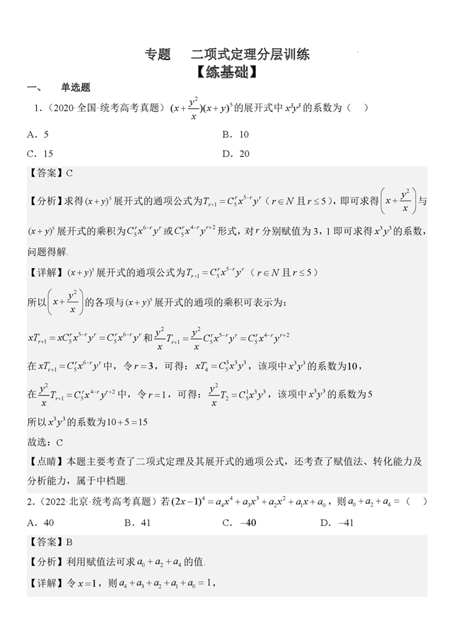 专题 二项式定理 分层训练(一)