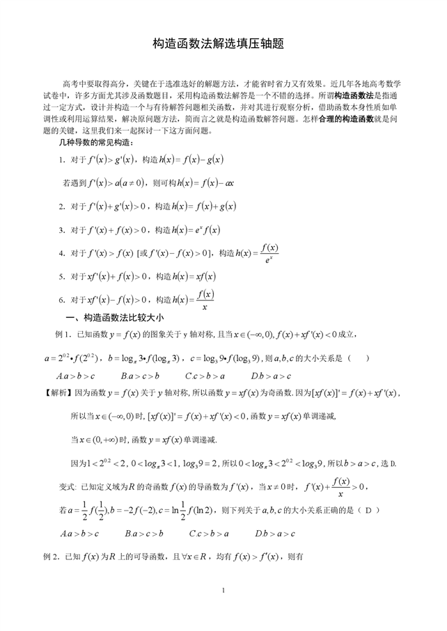 - 5. 压轴题题型与方法(选择、填空题)(一)