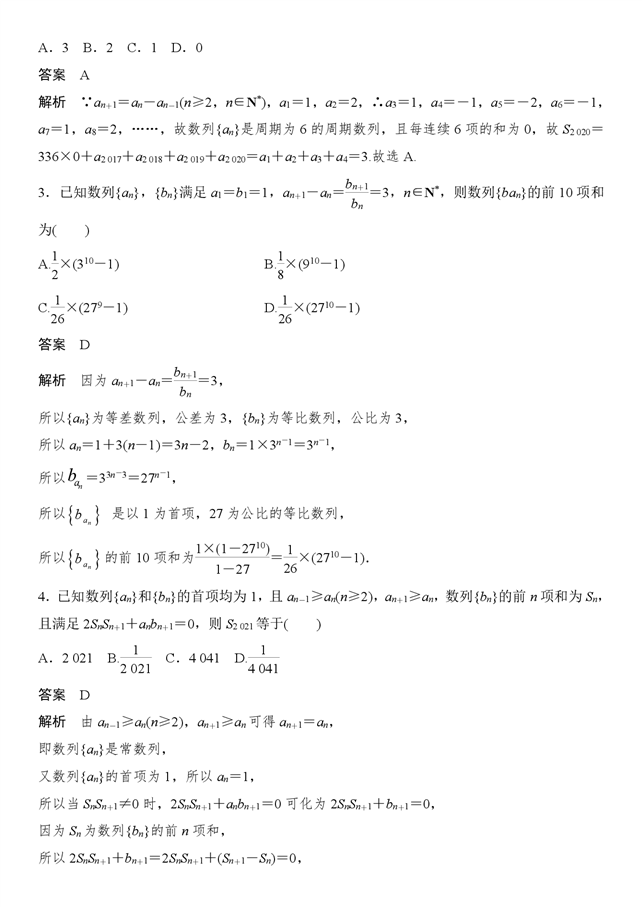 专题 第3讲 数列求和及其综合应用