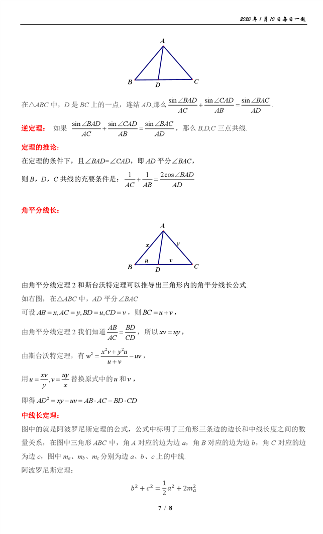 1. 角平分线之斯库顿定理
