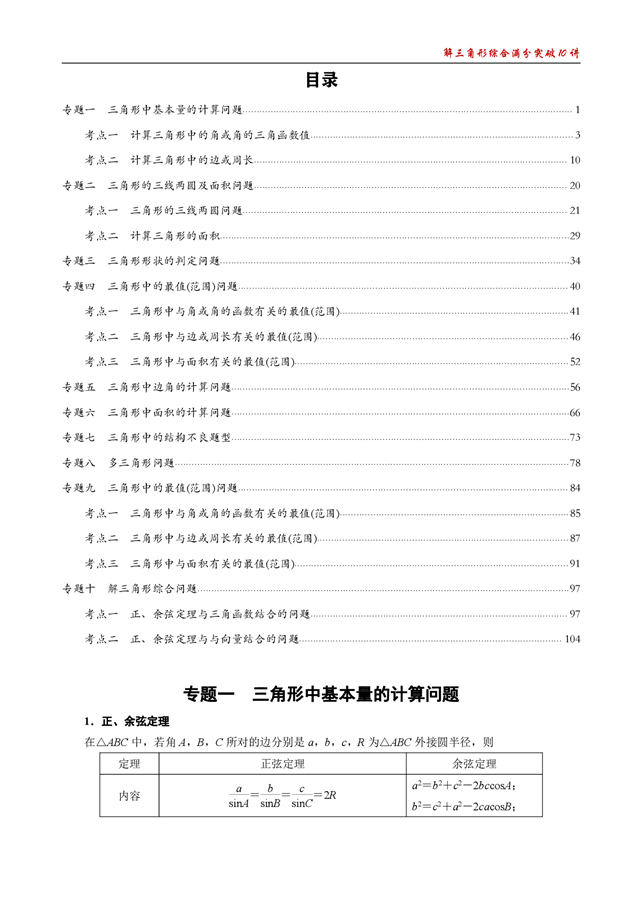 解三角形综合满分突破10讲(一)