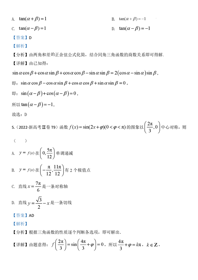 2022高考数学真题分类汇编---三角函数与解三角形(一)