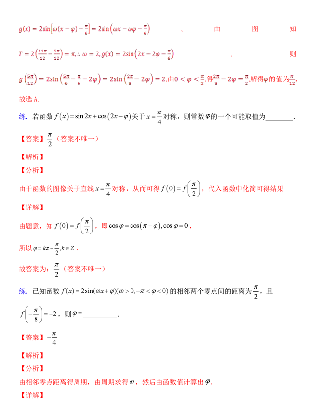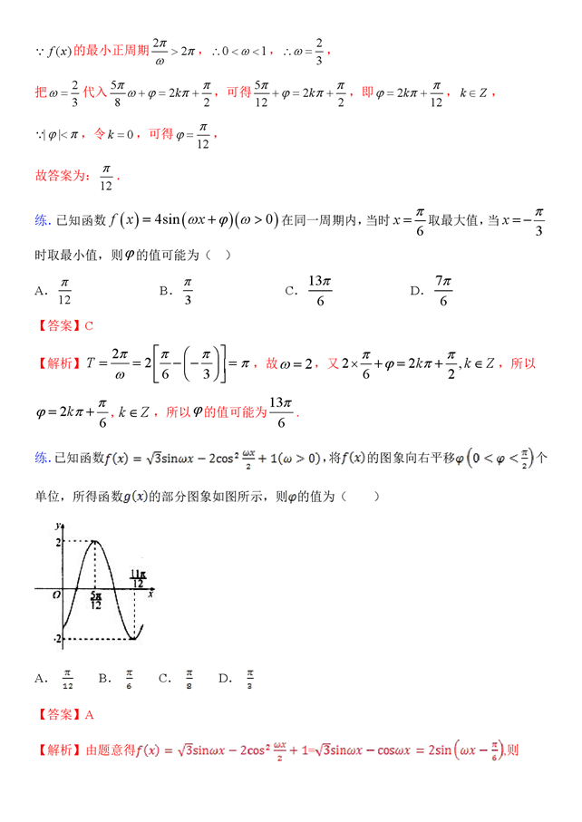 专题4 以求ω和φ为主导的三角函数图像与性质题型突破(二)