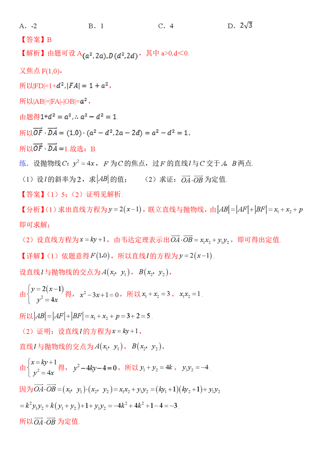- 2.242高考抛物线考试结论大全(二)