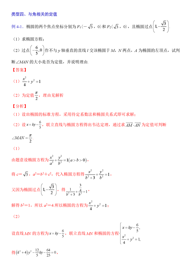 专题5 《圆锥曲线背景下定值的探索》专项突破(四)