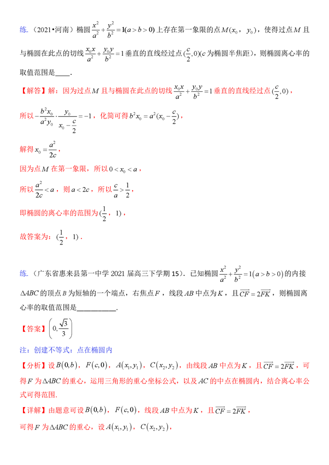 专题2 《圆锥曲线基本量问题》专项突破(三)