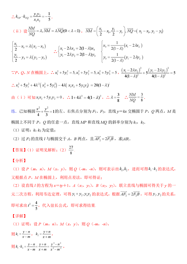 专题1 《圆锥曲线与向量结合问题》专项突破(三)