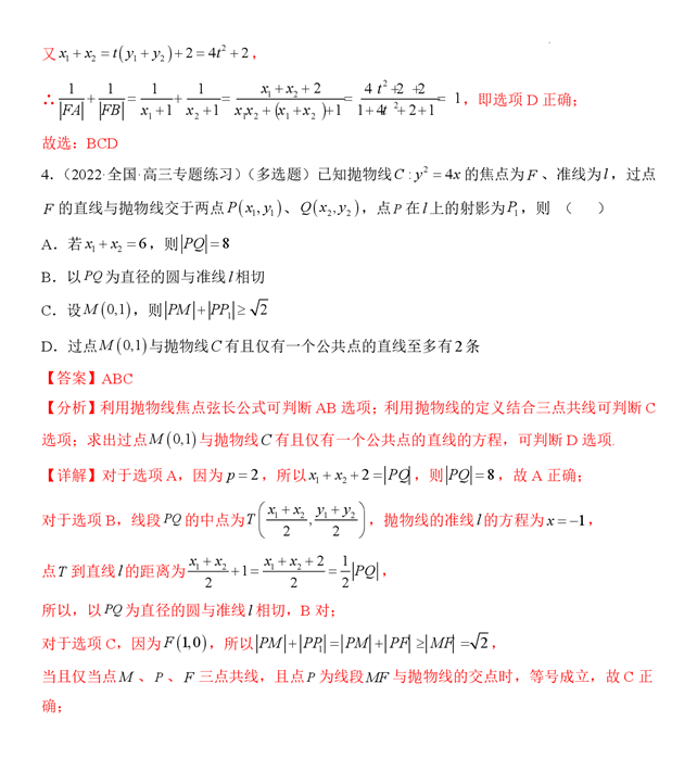 - 4.0高考抛物线考试结论大全(二)